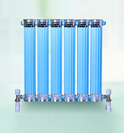 銅鋁復合散熱器采熱管采用99.9%T2無氧紫銅管,散熱翼采用L6360專用鋁型材。具有導熱性能高,節能環保,使用壽命長。連接方式一般為側近測出,進出水口在兩側各兩個,可以同側上進下出、異側下進下出、低端低進低出,設計有專用托卡,將散熱器托掛在墻壁上。散熱器水道因是銅結構,具有突出的防腐性能和防氧化性能,適用于不同品質的水作熱媒。